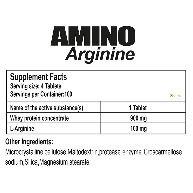 Whey protein concentrate, L-Arginine, Microcrystalline cellulose, Maltodextrin, protease enzyme Croscarmellose sodium, Silica, Magnesium stearate.