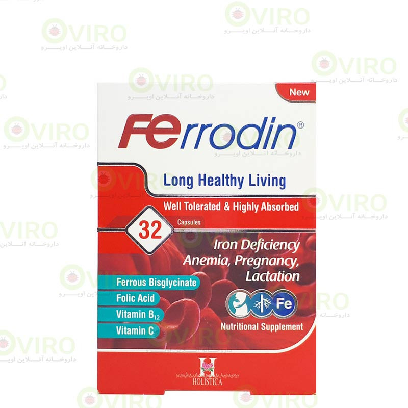 Holistica Ferrodin 32 Capsule- خصوصیات: افزایش جذب آهن, جلوگیری از ریزش مو, جلوگیری از کم خونی